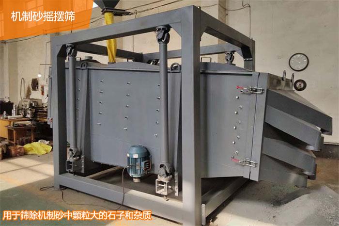 機(jī)制砂搖擺篩是配合制砂機(jī)使用的一種篩分設(shè)備,可以將制砂機(jī)制出的混合砂子篩除顆粒大的石子和雜質(zhì),從而提高砂子的質(zhì)量。